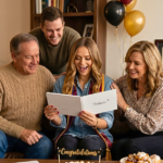 A group video tribute from family and friends, quality luggage, a professional wardrobe investment, a spa experience, personalized jewelry, or a funded travel adventure. The most powerful gifts from parents often pair something emotional with something practical.