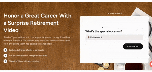 You set up a Tribute page and invite her coworkers, friends, and family to record short video messages.